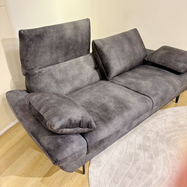 背もたれを倒してローバック、起こしてハイバックの2通りの使い方が出来ます。背の上げ下ろしは力の弱い方でも片手で動かせるスムーズさでストレスフリー。二人で並んで座った時にも、それぞれの姿勢に合わせて背もたれの高さを変えてお好きな姿勢で過ごすことができます。後姿もすっきりとデザインされているためレイアウトの自由度が高く、ダイニングとリビングの間に設置した場合にも、背を倒すことで食事をしながらソファ越しにテレビを観ることができます。肘置きとして使用できる腰クッションは体格の良い方向きのソフトと腰回りを重視される方向きのハードタイプからお選びいただけます。