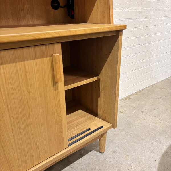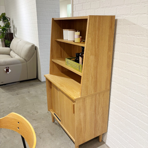 住環境に合わせたコンパクト設計のキャビネットシリーズ。ディスプレイ収納はお気に入りの食器や小物で自分好みの空間を演出することができます。コンセント2口付で家電製品を置くのはもちろんフラップタイプはデスクワーク等にも使用できます。自然の風合いと温もりを感じる木目調デザイン。インテリアに馴染みやすくお部屋は落ち着いた空間になります。オークとウォールナットの2種、サイズは3型ございます。